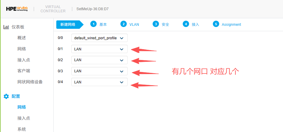 6.新建ENET 1口 有线,多口对应规则。单口无线进系统。